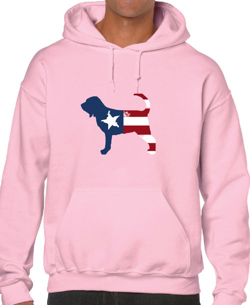 Our unisex Bloodhound Patriot hoodie is sure to please. Double-lined hood with color-matched drawcord. Pouch pocket. Preshrunk fleece knit - 50% cotton/50% polyester. Designed and printed in the USA.