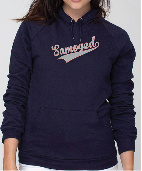 Every dog has a distinct personality based on its breed, root for your favorite by wearing the Samoyed Varsity Hoodie and be the ultimate fan! Our hoodie is made with 100% California Fleece cotton construction. Hooded with matching finished Polyester drawcord. Raglan sleeves. Kangaroo pocket.